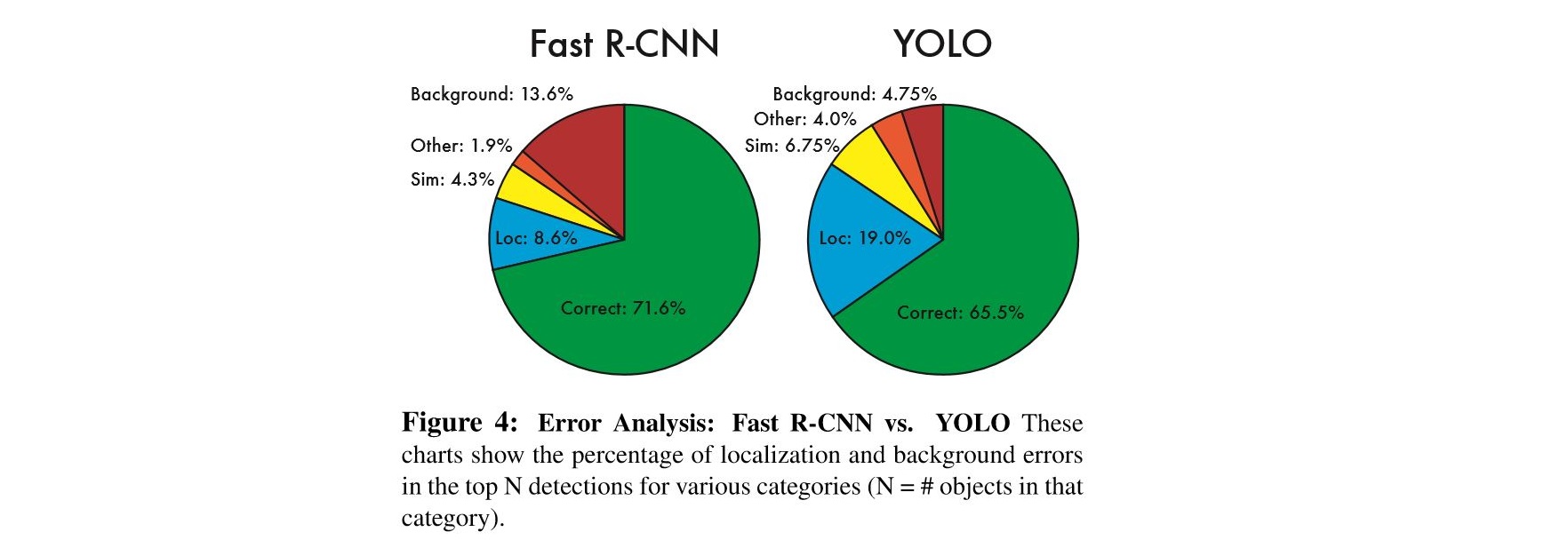 fast R-CNN과 비교했을 때 훨씬 적은 false-positive를 보였습니다(low background error)