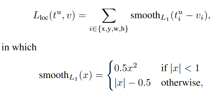 - u >= 1의 의미: background가 아니다. 즉, background가 아닐 때만 location loss를 사용한다.