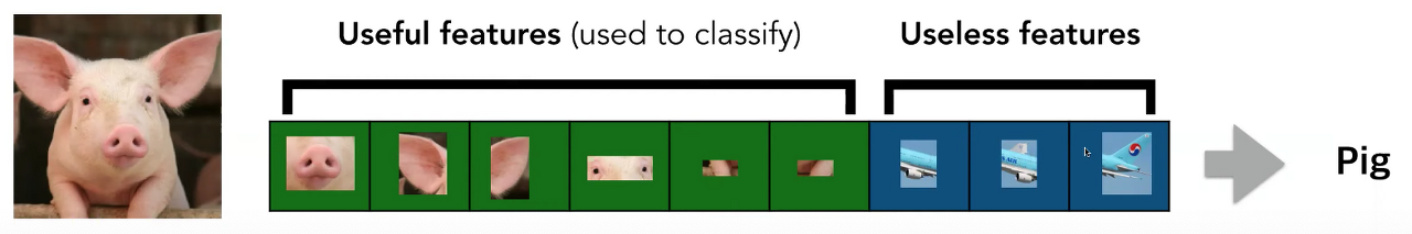 - classifier 학습하면 하나의 클래스에 대해 클래스를 분류하기 위해 유용한 피쳐와 그렇지 않은 피쳐가 존재
